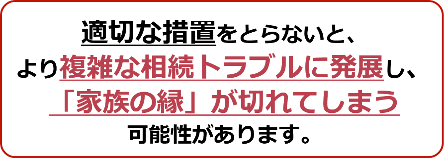 適切な対応を怠ると、相続トラブルがさらに複雑化し、最悪の場合「家族の縁」が断たれてしまう可能性もあります。