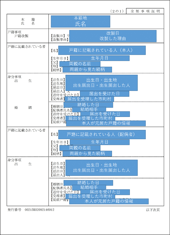 - 本人の氏名、本籍地、生年月日